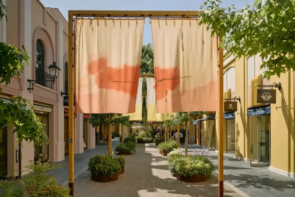 Celebrating its 25th anniversary, Las Rozas Village presents Chapter Two of Mano a Mano, a tribute to textile artistry. Regina Dejiménez’s Nest Salon and Aletheia’s hand-dyed arches transform the village into an open-air gallery of sustainable, emotional design a vibrant homage to beauty, texture, and touch.