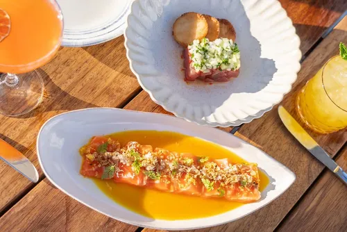 In Montauk, N’AMO specializes in seafood and raw-bar creations with a modern twist on coastal classics. Highlights include chilled scallops in melon aguachile and a creative cacio e pepe with creamy beans all enjoyed alongside stunning marina views.